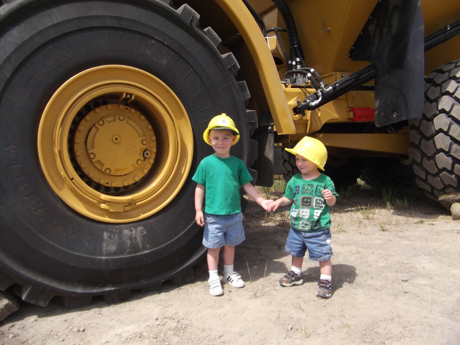 I was out shopping last week and the boys were watching a delivery man go up and down the elevator(?) on the back of his truck. He mentioned... if your boys think my truck is cool you should check out Dozer Days in Camas next weekend. The kids actually get to operate all sorts of bulldozer and other equipment. So I looked it up and sure enough...we got tickets and invited Oma and Papa Jim to join us. (Which was great, because Ken and I stood in lines all day while the boys went and played in the sand box and ate elephant ears and ice cream with the grandparents). At the entrance we hopped into the back of a dump truck and drove off into the quarry where all the diggers where... let the fun begin!