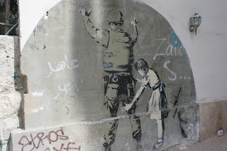 Tuesday I braved the train and headed towards Netanya to meet up with my friend Meg. We are actually friends through another friend. Meg came to Israel as an ex-pat wife just as we were leaving and we've only met once before. Our morning started off a little rushed with heavy traffic and a few wrong turns. I just barely made the 8:15 train. While on the train a man came by to check tickets and informed me that I was in a reserved seating only area and would have to move. It probably shouldn't have been a big deal, but it made me flustered and somehow I managed to misplace my ticket by the time I found a seat in the next train car. I knew I would be fine getting off the train, but I was supposed to transfer to another train at the next stop, so I had 5 minutes to find my ticket or potentially have to get a new one. uggh. In the end it all worked out (it had fallen into my book in my purse) and I got off at the right station and waited for Meg...and waited.... and waited... Finally I found someone who was willing to loan me their cell phone (who knew we were so attached to those things!) and left a message for Meg who apparently was at a different exit waiting for me. After 30 minutes and wondering whether I should head back to Haifa on the next train, I heard Meg calling my name from the opposite side of the train station. In no time we were off on our adventure for the day: Bethlehem. What an incredible experience. I'm so glad I went and so glad I was with a friend who had been there before. She had a "contact" who came and picked us up at the border crossing and took us to all the tourist sites (We drove just inside the wall to see all the graffiti and then on to Manger Square, Church of the Nativity, Milky grotto and Shepherd's field). We ended up in our "chaufer's" gift shop and bought some souveniers. Meg had planned on buying something from his shop and I got some things as well. On the way back to the wall we drove past the late Yasser Arafat's castle and Stars and Bucks cafe of course. It was a busy day and Ima and Mor picked me up from the train station since Ken was still in meetings.